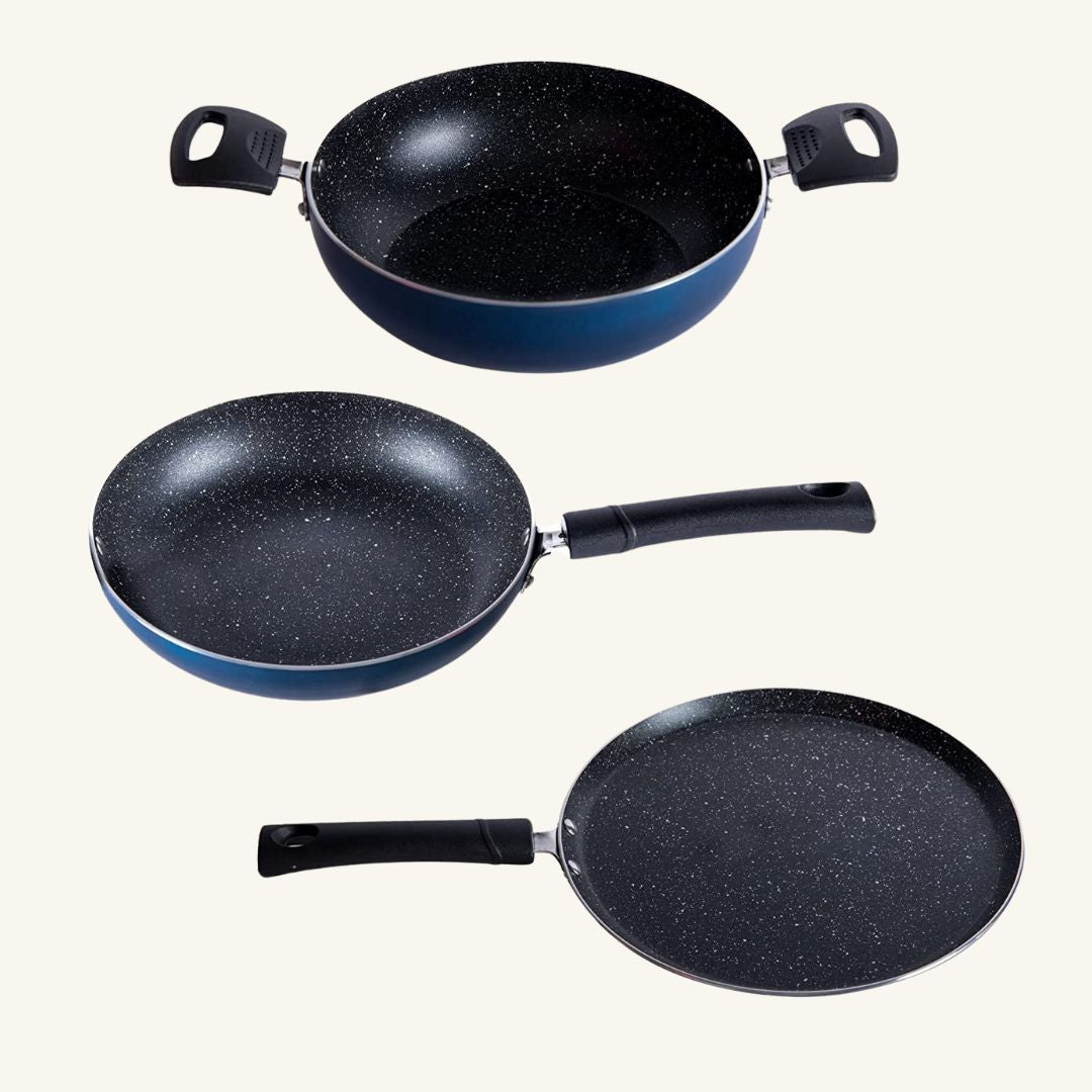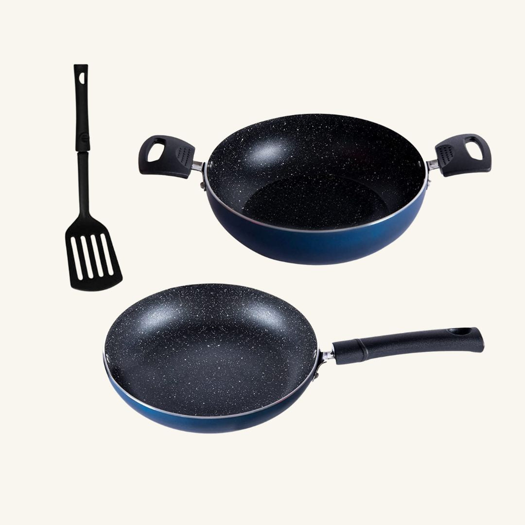 Green Technology - Fry Pan is made using PTFE based Technology which evenly distributes heat. Oil free cooking and light weight, consumes lower gas, saves time & money.